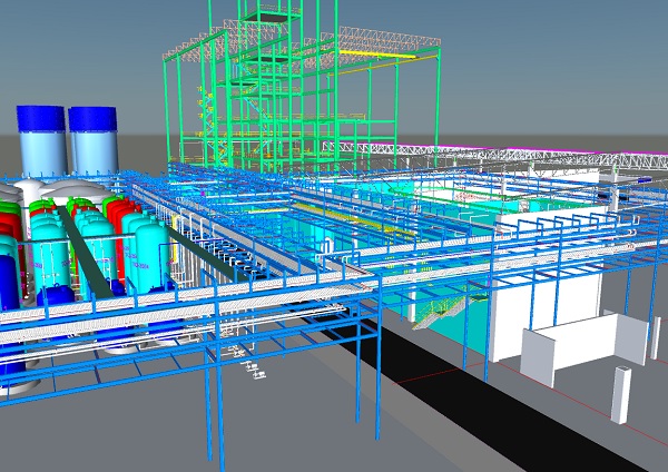 Criação de maquetes eletrônicas com softwares de modelagem em 3D, agregando em um só documento todo o projeto, contemplando por exemplo as áreas de civil, arquitetura, equipamentos, tubulação, estruturas metálicas, elétrica, instrumentação, etc., sendo assim, possibilitando visualizar o empreendimento como um todo, mesmo antes da finalização da obra.